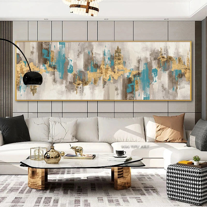 Urban Energy captures the pulse of contemporary life in bold sweeps of colour and layered texture. Each wide-format canvas blends movement, light, and depth—perfect for anchoring a living room, loft, or modern office with dynamic style. Display individually for a striking focal point or combine several for a gallery-like impact.
