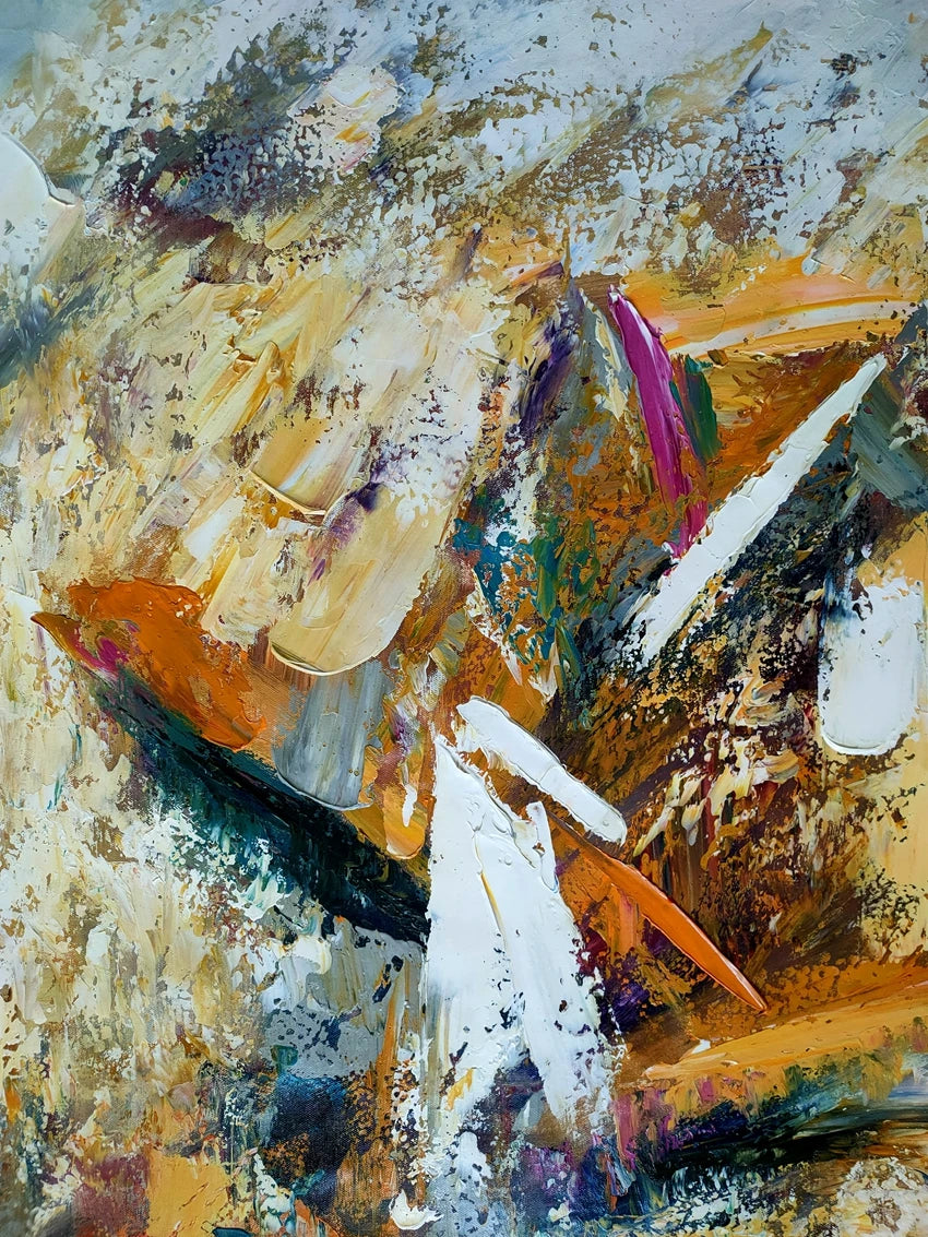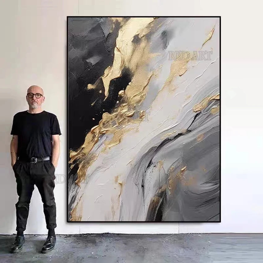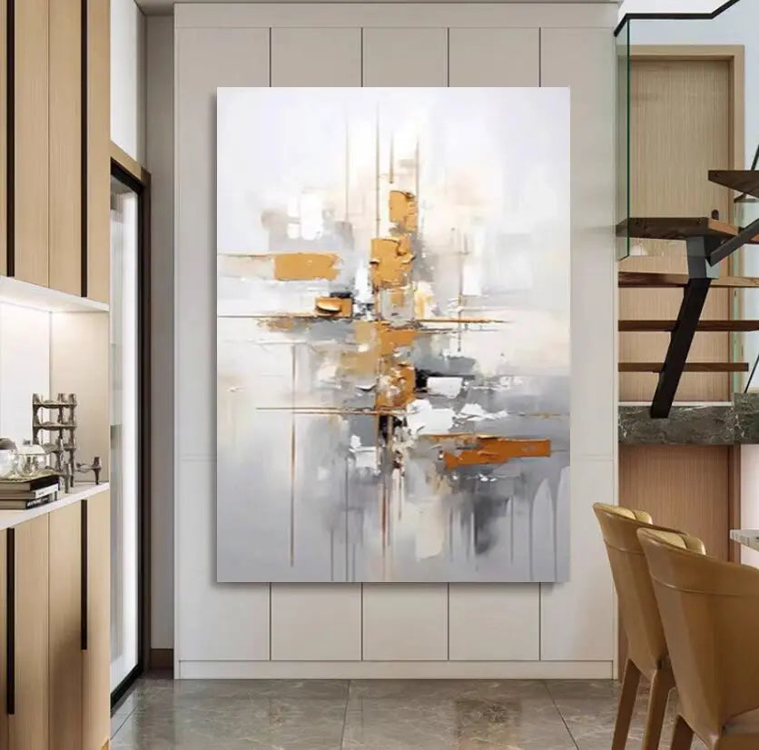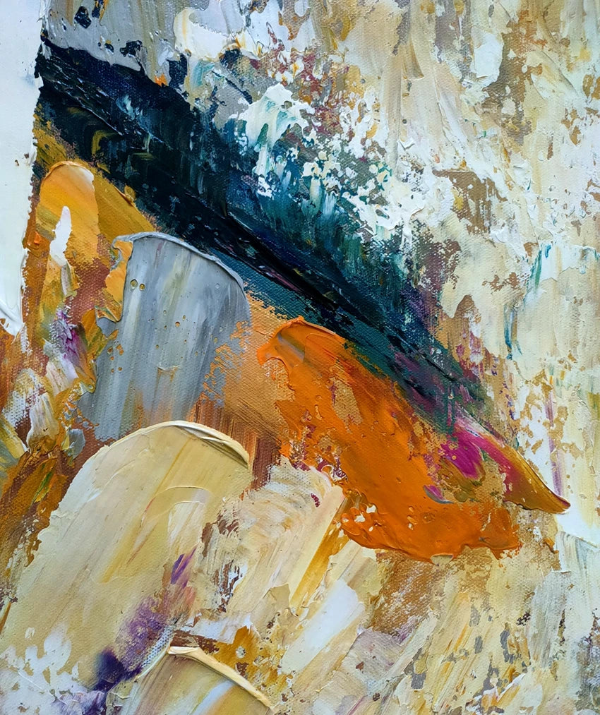 A modern set of abstract prints inspired by stone, ore, and weathered surfaces. Layers of slate, charcoal, teal, sand, and warm amber meet soft metallic accents to create natural movement. Easy to style in living rooms, bedrooms, hallways, or offices—display one as a statement or mix a few for a clean, cohesive gallery wall.