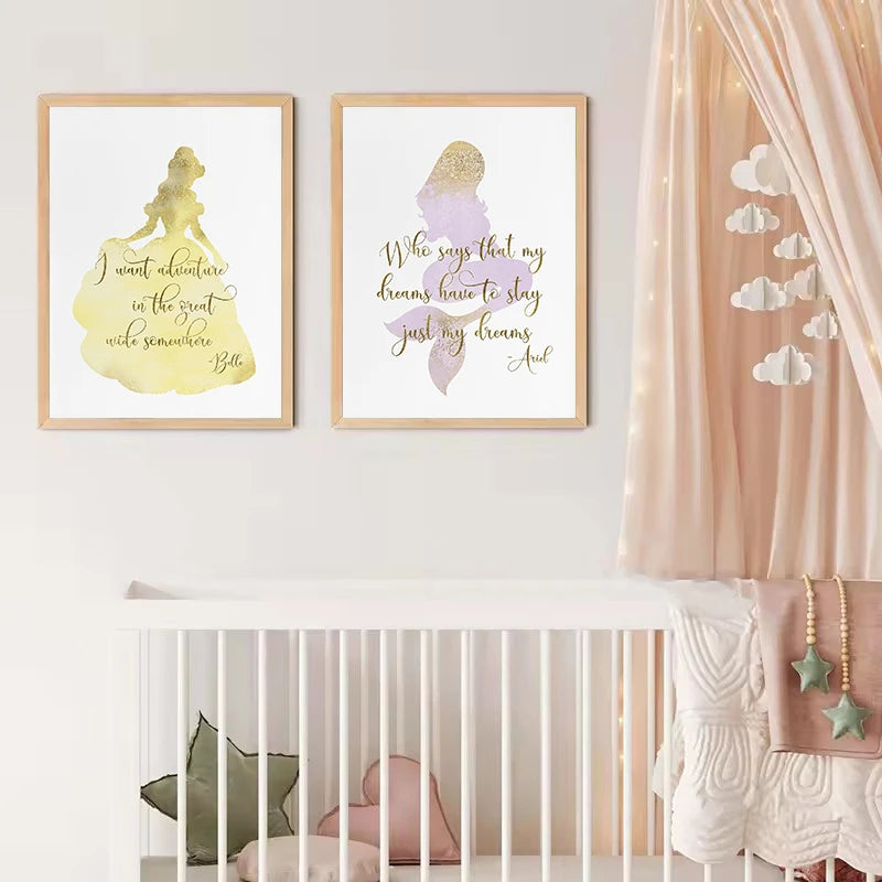 Each print layers soft watercolor tones with metallic highlights and uplifting song-inspired phrases, perfect for a nursery, bedroom, or any space that loves a touch of magic and music.